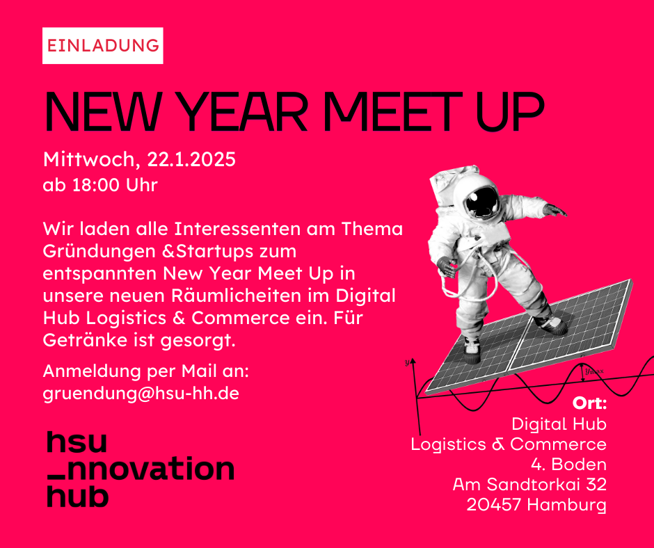 Wir laden Interessenten am Thema Gründen & Startups herzlich ein, das neue Jahr mit uns bei einem New Year Meet Up im Digital Hub Logistics & Commerce zu begrüßen!
